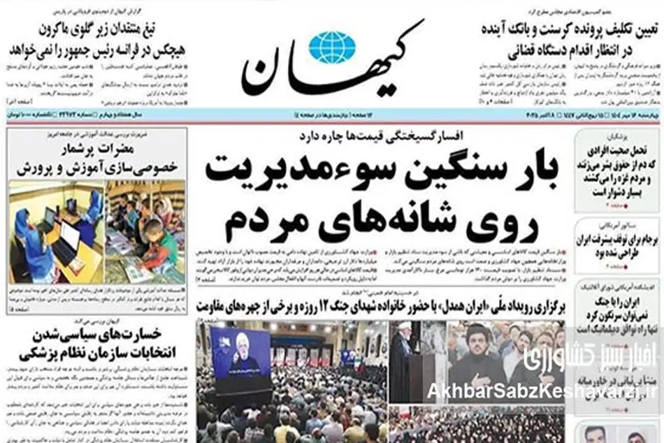 روزنامه کیهان: سوء مدیریت معیشتی و بار سنگین قیمتها بر دوش مردم