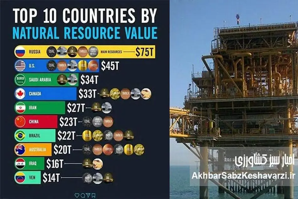 ایران با ۲۷ تریلیون دلار منابع طبیعی در جایگاه پنجم جهان ایستاده است.