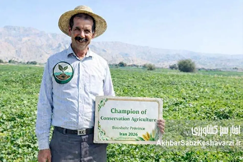 محمدرضا رجبی، کشاورز پیشرو بوشهری، با روش کشاورزی حفاظتی موفق به حفظ خاک و آب در اقلیم خشک جنوب شده و الگوی پایداری ملی شده است.